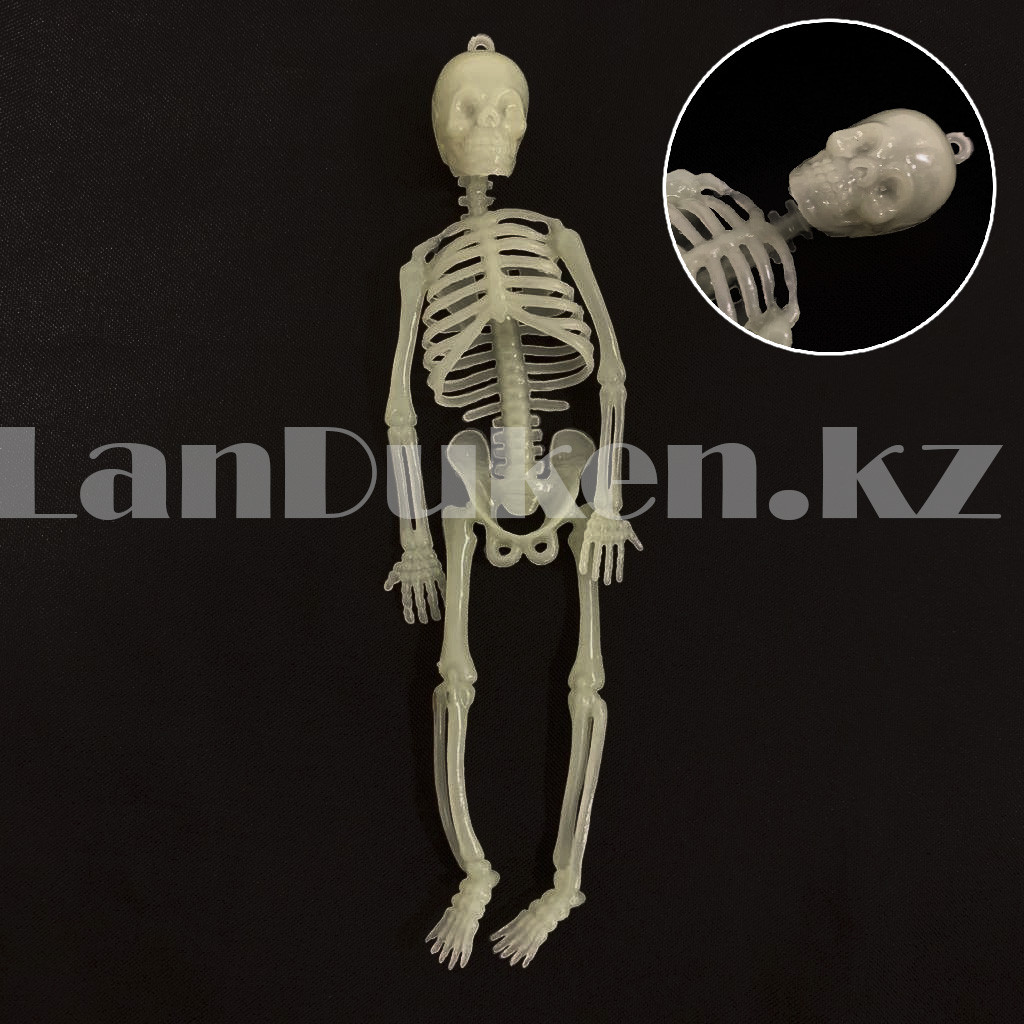Фосфорный скелет- оптимальный и легкодоступный вариант быстрого украшения на праздник Хэллоуин. Заказав один раз в нашем интернет магазине LanDuken.kz украшение для Хэллоуина вы сможете аккуратным образом сложив, воспользоваться им ежегодно! Оформлена в салатовом цвете из фосфора, которая даст возможность свечения в темноте. Конструкция скелета разборная, то есть легко и просто сгибаются таз, колени, голова, локти. На макушке головы есть сквозное отверстие для подвески.