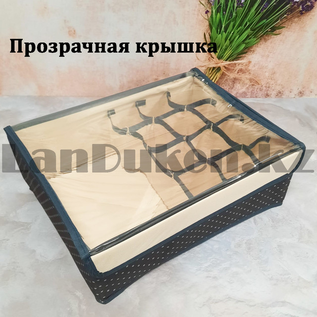 Органайзер для хранения вещей с прозрачной крышкой 33х25х12 см синий в крапинку