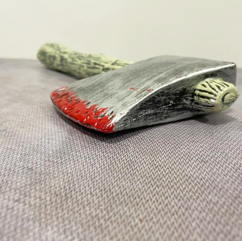 Кровавый слет на лезвий дас еще причин для страха, кроф дополняет и так грозны образ тапара. Тем не мений это просто внешни вид топорика, топорик изготовлен из пластика и он пуст внутри, легки, не острый так что не опасен для детских игр .