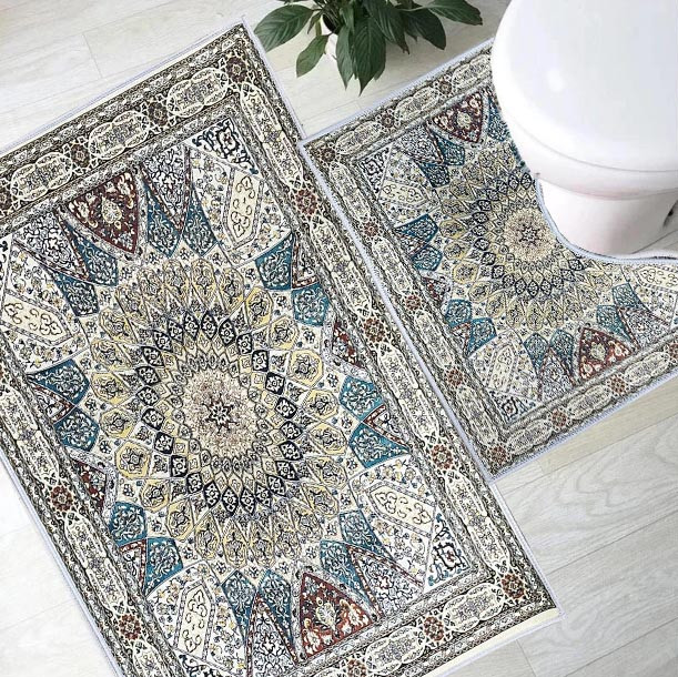 Ванна одна из самых важных мест в доме, не плохо их украсить Коврик для ванной двойка 80х51см и 50х40см с узорами синий. Узор напоминает кавер очень стильно смотрится со стилем лофт.