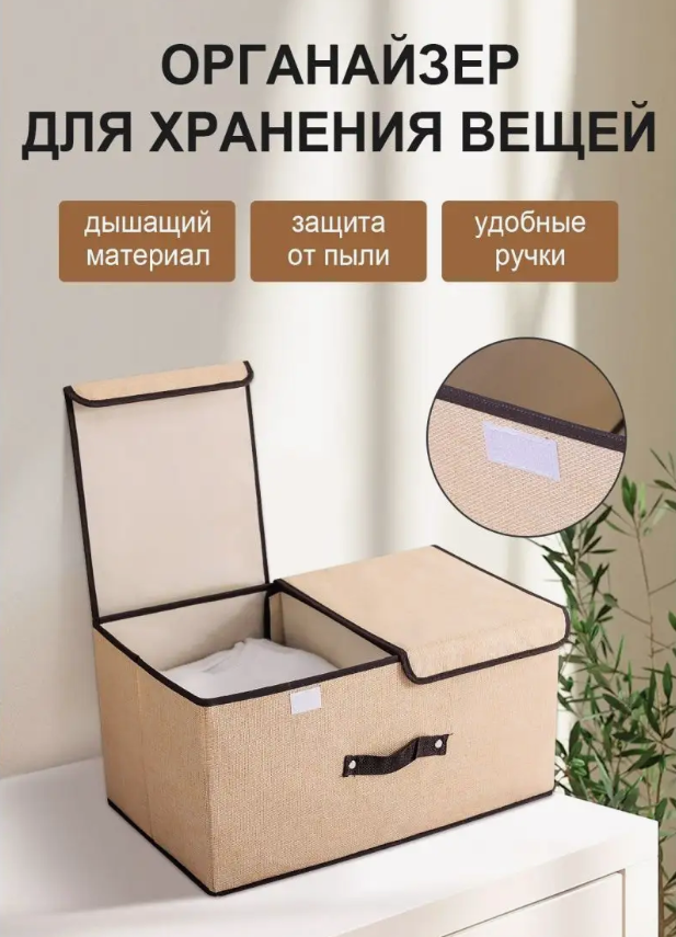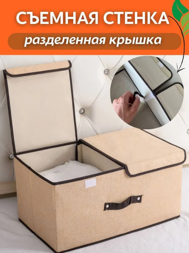Тканевый короб для хранения и декора, имеет оптимальный размер 35х24х16 см. Органайзер многофункциональный, используется в доме, офисе, на даче как для декора, так и для хранения игрушек, одежды, косметики, посуды и еды. Короб имеет уплотненное дно, что делает его устойчивым и позволяет сохранять форму. По желанию можно использовать один или два отсека для хранения, которые разделяет съемная перегородка. Надежная и прочная липучка, позволит защищать вещи от пыли, детей и животных.