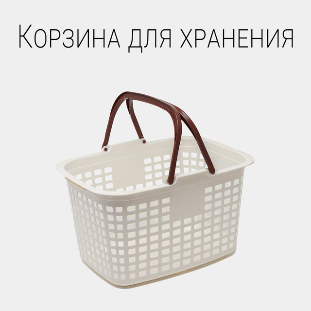 В наличииКорзина для хранения пластиковая с ручками 45х32х27см бежевая