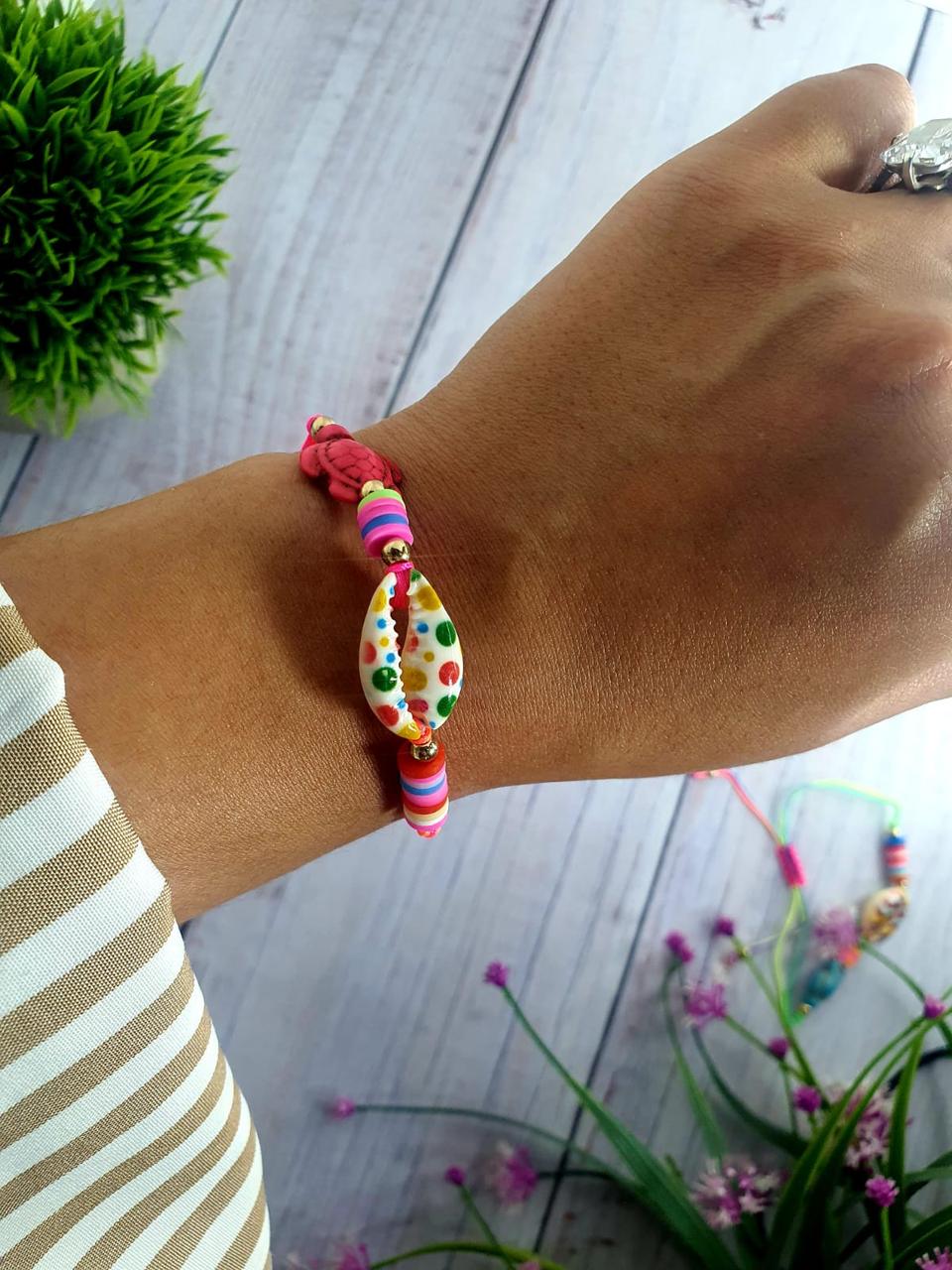 Погрузиcь в атмосферу лета с ярким пляжным браслетом, украшенным миниатюрными черепашками – символами долголетия, гармонии и морских приключений!