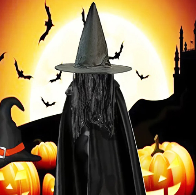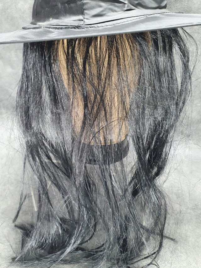 Шляпа ведьмы на Хэллоуин (Halloween) с волосами черная