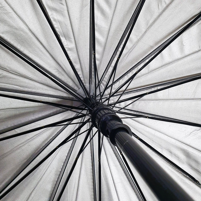 Зонтик необходимая вещь, при любой погоде, не только в дождь, но и когда идет снег. С наружной стороны зонт черного цвета, а внутри серебристого. В последнее время, с помощью зонтика можно укрываться от снега, а рукоятка оформлена в виде крюка что позволяет повесить зонт на любое пригодное для этого место. Можно использовать в качестве опоры или стучаться в дверь, а также защититься им от хулиганов!!