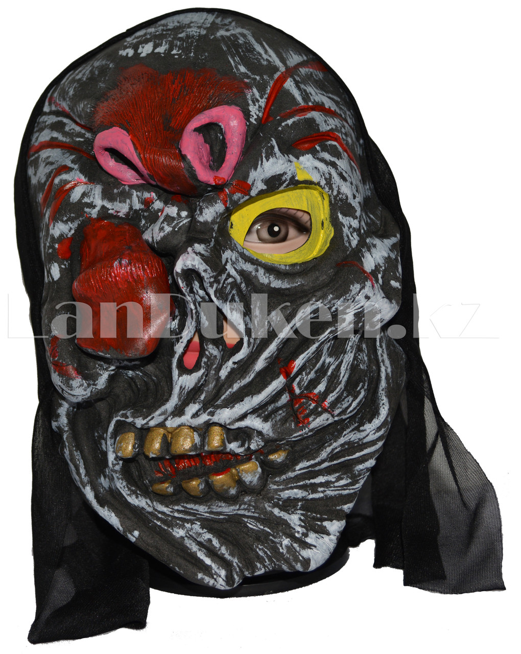Резиновая маска с капюшоном - самое просто решение на Хэллоуин, если вам некогда или не хочется продумывать костюм. Капюшон, в отличие от масок на тесьме, не будет пережимать голову, а потому маску можно носить в течение длительного времени. Четкие симметричные детали. Кстати, благодаря тому, что маска выполнена из мягкой резины, при необходимости вы сами можете отрегулировать размер отверстий для глаз, носа, рта, да и вообще дополнить маску собственными деталями.