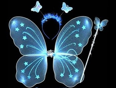 Крылья и волшебная палочка - набор феи - не оставит Вашу принцессу незамеченной на празднике. В комплекте воздушные полупрозрачные крылышки, ободок с двумя бабочками и волшебная палочка.