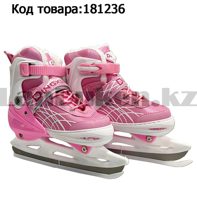 Коньки для льда раздвижные с меховой подкладкой регулируемый размер Dingxing S, M, L розовый цвет