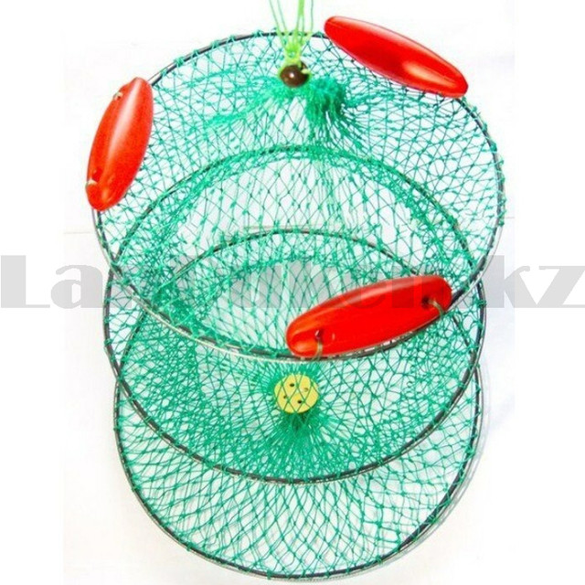 Садок рыболовный круглый с поплавками синтетические нити каркас из 3 колец складной диаметр 46 см