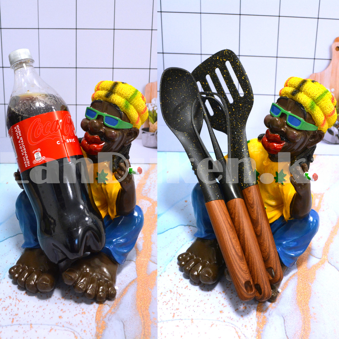 Посетив наш полезный интернет магазин landuken.kz вы не раз убедитесь в том, что вам не нужно ломать голову и много думать над тем чтобы подарить на этот раз накануне праздника!). Ведь и действительно, необычные аксессуары, полезные вещи для дома и многое другое всегда и с радостью ждут своего хозяина! Сегодня мы хотим вам показать оригинальные подставки для бутылок вина, шампанского или любого необходимого инвентаря, а именно Подставка для бутылки Афро-американец с сигарой, которая согреет ваш дом своим пламенным и неординарным видом, отлично будет сочетаться дома, на кухне, загородом или на даче. Красочный дизайн горячего мужчины помимо своей основной функции в исполнении держателя для бутылок прекрасно разрядит атмосферу и внесет яркие краски в обыденные дни, а в праздничные только веселье.